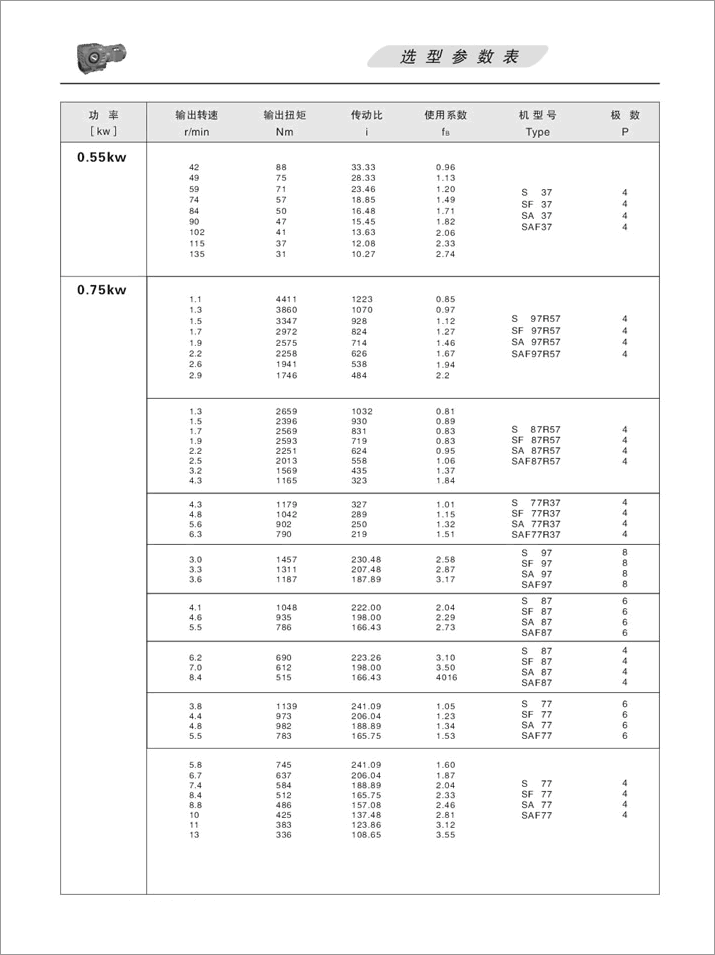 上一篇:S系列斜齒輪蝸桿減速機選型參數表0.75KW